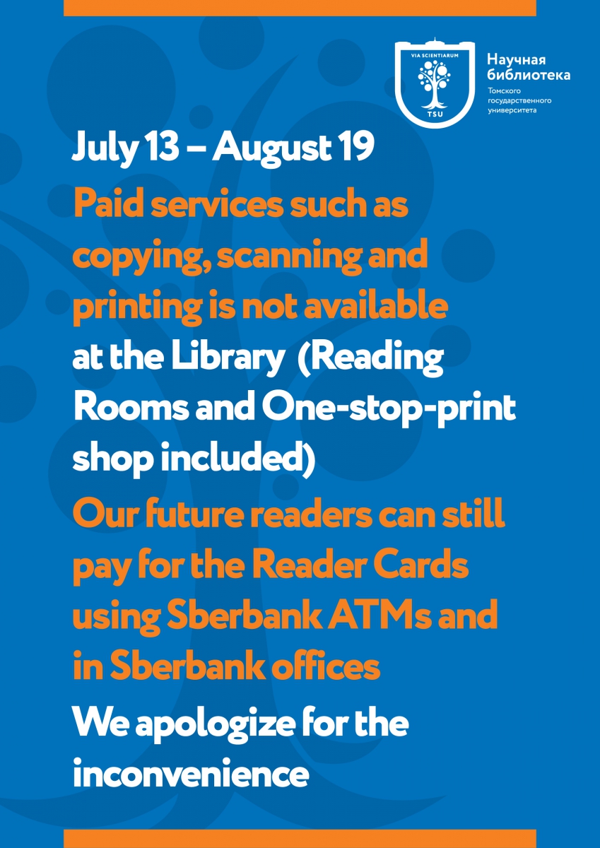 July 13 - August 19 paid services such as copying, scanning and printing is not available