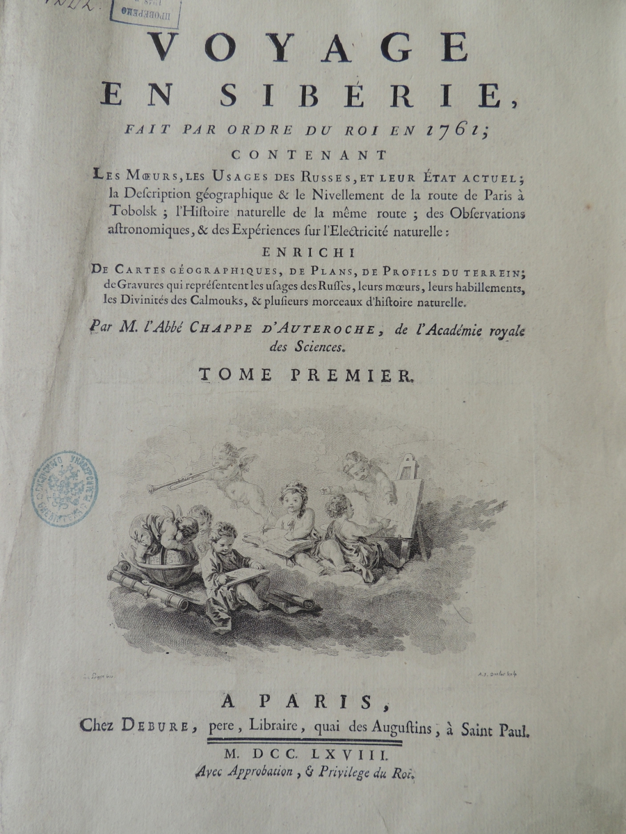 О том, как проходило это необыкновенное путешествие, аббат Шапп д’Отрош подробно рассказал в своей книге, озаглавленной «Voyage en Sibérie, fait par ordre du roi en 1761» («Путешествие в Сибирь, совершенное в 1761 году по приказанию короля»). Даже сегодня, спустя две с половиной сотни лет, эта книга в первой своей части, где описывается пребывание аббата в нашей стране, читается как увлекательный приключенческий роман. Суровый климат, сказочные богатства Сибири, многочисленные детали б