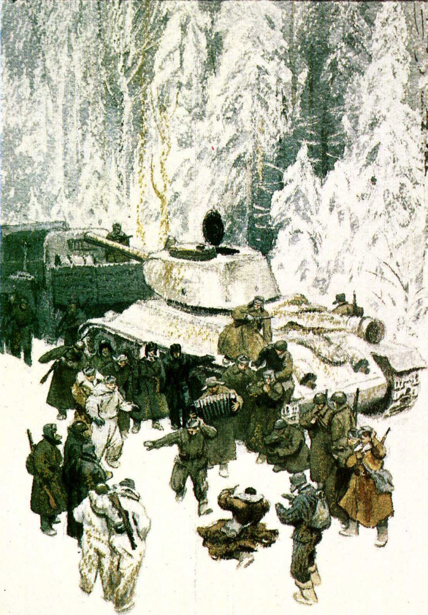 Поэму «Василий Тёркин» (другое название – «Книга про бойца»), заслужившую всенародное признание и любовь, по праву можно считать одним из главных произведений А.Т. Твардовского и его вкладом в общее дело борьбы с фашизмом. По словам самого автора, персонаж по имени Вася Тёркин родился еще в период советско-финской войны (1939-1940). Тогда он являлся героем фельетонов, которые печатались на страницах газеты Ленинградского военного округа. Члены редколлегии газеты, куда в качестве военкора входил и А.Т. Твардовский, создали поэтический и визуальный образ простого солдата – сильного, добродушного и удачливого. После финской кампании писатель решил посвятить Тёркину отдельное произведение. В самом начале Великой Отечественной войны А.Т. Твардовский становится военным корреспондентом на Юго-Западном фронте. Весной 1942 г., вернувшись в Москву, писатель обобщает все свои довоенные наброски и фронтовой опыт. Уже 4 сентября 1942 г. в газете Западного фронта «Красноармейская правда» он начинает публиковать первые главы поэмы, посвященной Василию Тёркину. Почти одновременно они печаталась в центральных газетах, а также московских журналах «Красноармеец» и «Знамя». Кроме того, отрывки из поэмы читались и по радио.