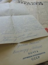 В письме, адресованном В.А. Лойше, космонавт отметил, что регулярно получает номера областной газеты «Красное знамя», т.к. старается быть в курсе событий, происходящих на томской земле. В конверт были вложены два листа рукописного текста обращения к строителям Томского нефтехимического комбината, которое космонавт написал для газеты. Оно было опубликовано 4 июля 1980 г. на первой полосе «Красное знамя». Таким образом, фонд архивных документов, хранящихся в Научной библиотеке, пополнился ещё одним уникальным автографом нашего знаменитого земляка.