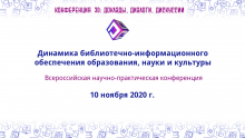 10-11 ноября 2020 г. на базе Научной библиотеки Омского государственного технического университета (ОмГТУ) в онлайн-формате прошла Всероссийская научно-практическая конференция «Динамика библиотечно-информационного обеспечения образования, науки и культуры». Председателем конференции выступил председатель регионального методического объединения библиотек вузов Западной Сибири, директор Научной библиотеки национального исследовательского Томского государственного университета (НБ НИ ТГУ), кандидат исторических наук Артем Васильев; сопредседателем - доцент факультета филологии и медиакоммуникаций Омского государственного университета имени Ф. М. Достоевского, кандидат исторических наук Татьяна Бернгардт.