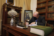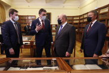 Премьер-министр РФ Михаил Мишустин в рамках официального визита в Томск посетил 6 июля Музей книги Научной библиотеки ТГУ. Председателю правительства и министру науки и высшего образования Валерию Фалькову были представлены уникальные издания, хранящиеся в фондах библиотеки, и одно из направлений работы коллектива в Год науки и технологий – цифровая платформа «PRO Сибирь».