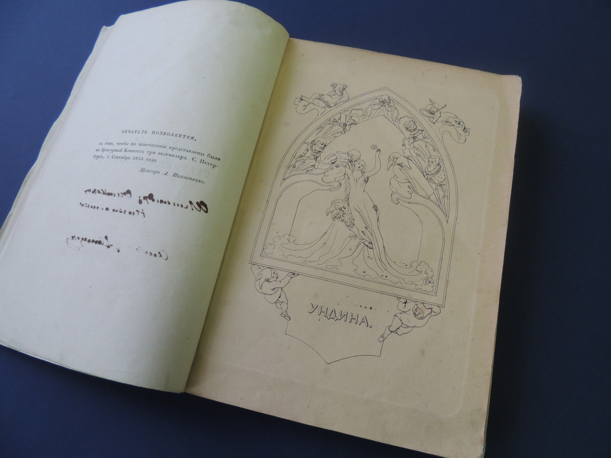 Интересно, что цензором, разрешившим отдельное издание, стал профессор словесности Санкт-Петербургского университета А.В. Никитенко. В составе его книжного собрания, которое ныне хранится в Научной библиотеке Томского университета, оказался экземпляр «Ундины» с дарственной надписью поэта: «Александру Васильевичу Никитенко от Автора». Личные и творческие взаимоотношения двух деятелей русской словесной культуры XIX в. нашли свое отражение в записях А.В. Никитенко в его знаменитом «Дневнике».