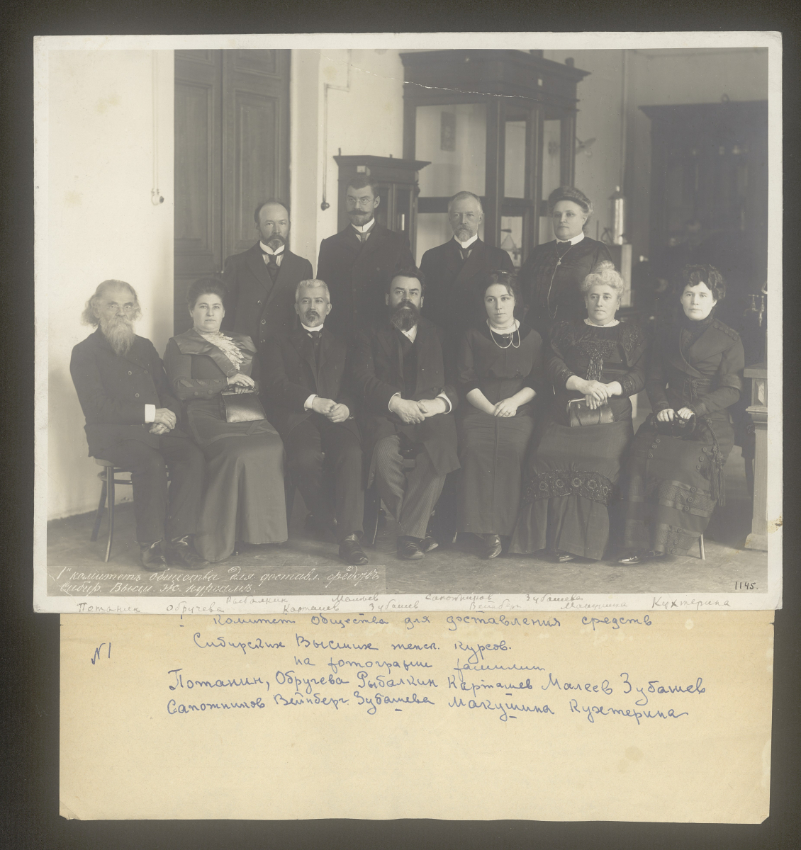 – Особую роль в продвижении идеи курсов и их непосредственной организации сыграли преподаватели Императорского Томского университета и Технологического института, – рассказывает один из авторов выставки, заведующий отделом рукописей и книжных памятников НБ, кандидат исторических наук Кирилл Конев. – В сентябре 1909 года в лаборатории профессора Ефима Лукьяновича Зубашева встретились инициаторы открытия курсов, среди которых были профессора и их жены, а также знаменитый исследователь и общественный деятель Григорий Николаевич Потанин. Решено было создать Общество для изыскания средств на открытие и поддержание курсов.