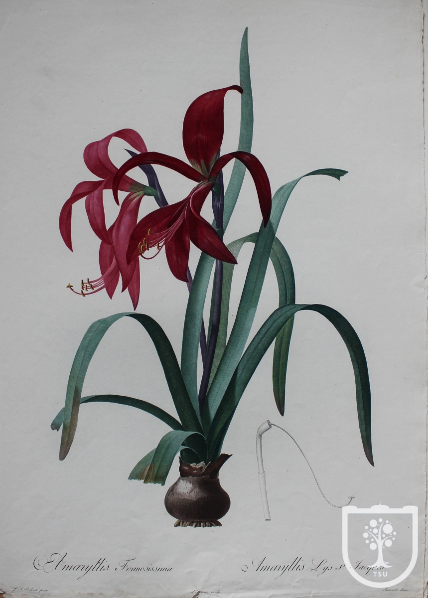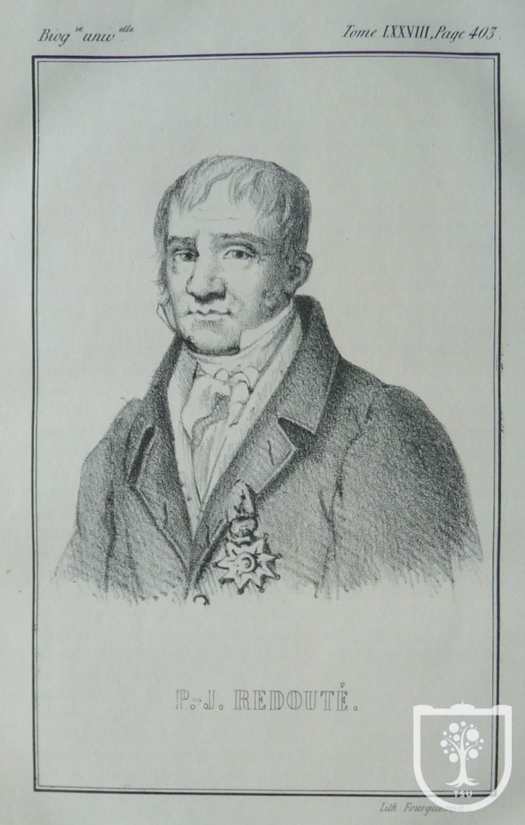 В Научной библиотеке ТГУ в составе книжного собрания Г.А. Строганова был полный комплект «Лилейных», т. е восемь томов в фолио, по десять выпусков в каждом томе. Издание выбыло из фонда университетской библиотеки в 1930 г. в результате изъятий, проведённых так называемой «ударной бригадой» Совнаркома. Экземпляр, оставшийся в библиотеке, неполный, он включает выпуски 1, 3-5; состоит из вступительной статьи, 24 гравюр и пояснений к ним. Благодаря этому обстоятельству мы имеем возможность de visu составить представление о прекрасной работе Пьера Жозефа Редуте, которого современники называли «Рафаэлем цветов».