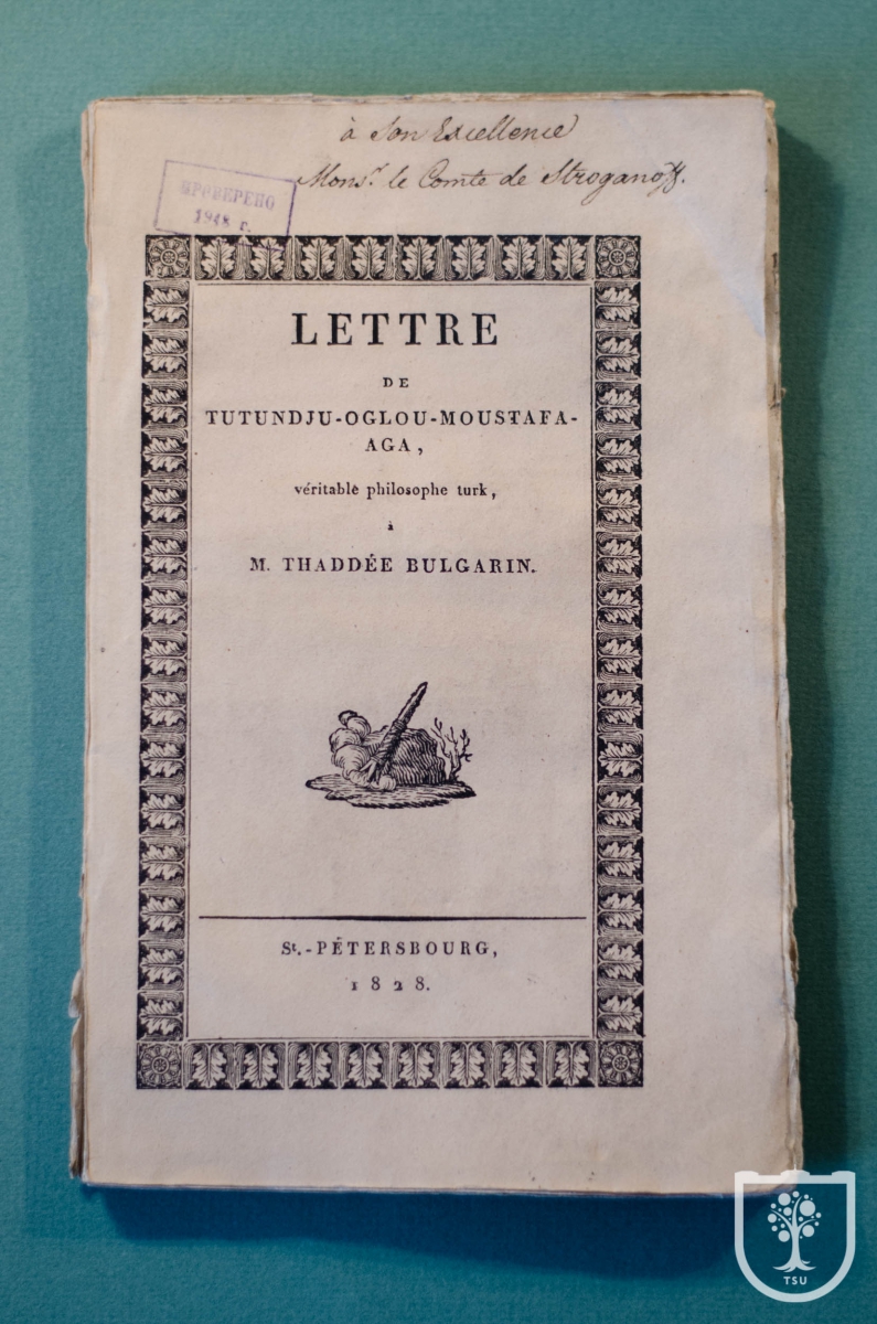 В Научной библиотеке Томского университета в книжном собрании известного дипломата графа Г.А. Строганова находится книга с дарственной надписью Сенковского, изданная ещё до периода популярности автора в качестве Барона Брамбеуса. Это научный памфлет в пародийно-сатирическом жанре, переведённый на французский язык. Впервые «Письмо Тютюнджю-Оглы-Мустафа-Аги, настоящего турецкого философа, к одному из издателей «Северной пчелы»» было опубликовано в 1827 г. в пяти номерах «Северной Пчелы» (№№ 129-133).
