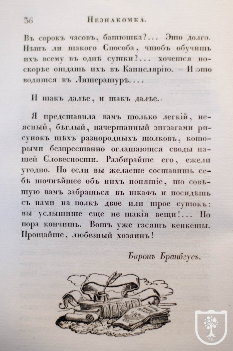 Псевдоним Барон Брамбеус принадлежит известному польскому и русскому учёному, писателю и редактору О.И. Сенковскому, который печатал свои произведения и под другими псевдонимами.