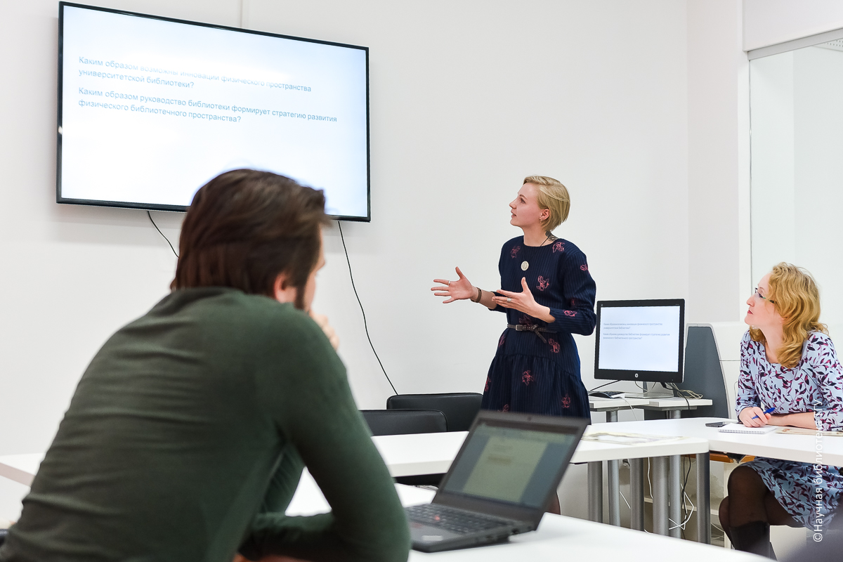 Инновационные разработки Научной библиотеки на секции «Инновации, научно-техническое развитие и социокультурные традиции» представила заведующая отделом обслуживания Галина Сербина в докладе «Инновации в развитии физического пространства университетской библиотеки». В нем прозвучали результаты исследования, которое было проведено под руководством участников Школы социальных наук (SSL, Москва) и посвящено подходам к изучению изменений пространства библиотеки. На примере новых пространств библиотеки – Информационного центра 24/7, Исследовательского зала и «третьих мест», а также исторического изменения пространств библиотеки была представлена концепция измерения инноваций физического пространства в виде модели 4P’s: продукт, процесс, позиционирование, парадигма. Обсуждая представленные результаты, участники секции пришли к выводу, что для следующего шага развития необходимо переосмысление вопроса «что такое библиотека в современном ее понимании»: в отношениях с читателем, по отношению к книге, по отношению к городу.