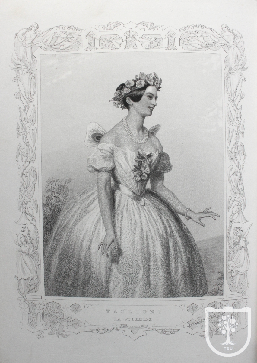 Мария Тальони (Taglioni, 1804-1884), прославленная балерина XIX века, представительница итальянской балетной династии Тальони в третьем поколении, дебютировала в театре Опера в 1827 году. Визитной карточкой Марии Тальони стал романтический балет «Сильфида». Сюжет балета основан на фантастической новелле французского писателя Шарля Нодье «Трильби» (1822). Сильф и Сильфида – это духи леса, олицетворяющие стихию воздуха. Сильфида невидима для всех, за исключением того, кого она любит. Премьера балета на музыку французского композитора Жана Шнейцхоффера в постановке балетмейстера Филиппо Тальони состоялась в 1832 году в Гранд-Опера в Париже.