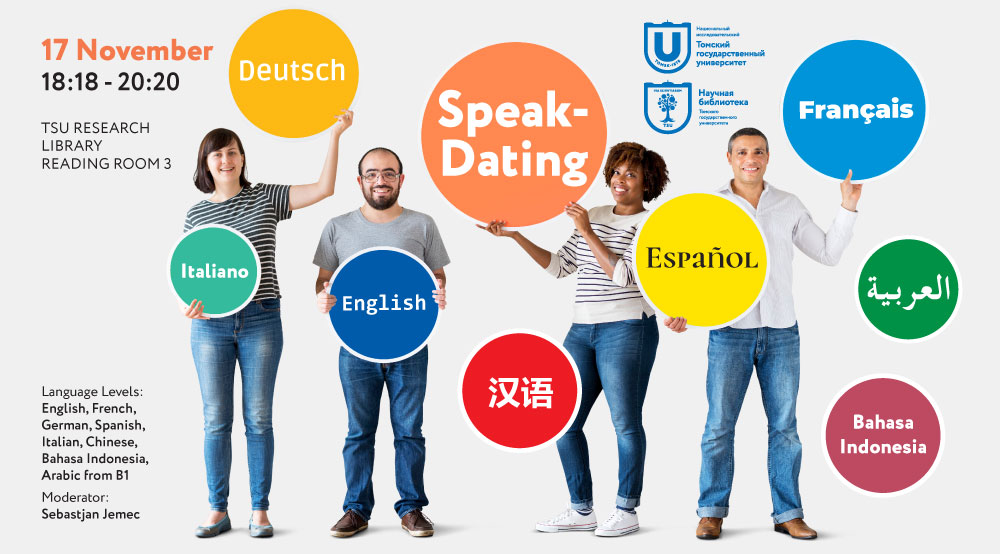 17 ноября с 18:00 до 20:20 в читальном зале № 3 Научной библиотеки Томского университета состоится Speak-dating – очередной марафон общения на разных языках.
