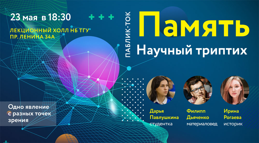 Паблик-ток «Научный триптих. Память» станет одной из площадок Библионочи, которая пройдет в Научной библиотеке ТГУ 23 мая. В 18:30 в лекционном холле молодые исследователи начнут разговор о феномене «Память» с точки зрения разных наук – нейрофизиологии, истории, материаловедения – и поделятся мнениями о своих любимых книгах. Услышим много интересного и неожиданного. Про какие особенности нашей памяти нужно знать, и чем полезна мнемотехника? Что могут помнить металлы, и как это влияет на нашу жизнь? Что такое историческая память, и как она меняется в цифровую эпоху?