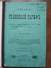 Особое место в представленных документах занимает экземпляр знаменитой работы Менделеева «Толковый тариф, или исследование о развитии промышленности России в связи с ее общим таможенным тарифом 1891 года» – с автографом на издательской обложке. Также можно познакомиться со студенческими публикациями Дмитрия Ивановича, его работами по технико-экономическому обоснованию развития нефтяной и горной промышленности Российской империи, общими работами по вопросам образования и социально-экономического устройства Российского государства.