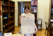 – Я работала с личным архивом директора Научной библиотеки Веры Николаевны Наумовой-Широких, удивительной женщины своей эпохи. Погружаясь в документы, я все больше ею восхищалась, – рассказала Кристина. – При этом выяснилось, что некоторые моменты необходимо ещё уточнить: например, в биографиях сейчас пишут о дне рождения Веры Николаевны в ноябре, но по косвенным источникам (периодической печати, письмам-поздравлениям) получается, что поздравляли её с юбилеем в сентябре. Поэтому навыки работы с историческими источниками, ещё не введенными в научный оборот, безусловно, ценнейший опыт, который необходим каждому исследователю-историку.