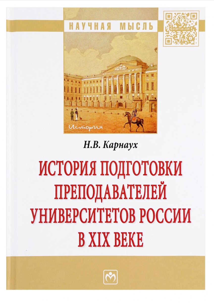 Карнаух Н.В. История подготовки преподавателей университетов России в XIX веке : монография / Н. В. Карнаух. – М. : ИНФРА-М, 2017. – 150 с. – (Научная мысль). URL: http://znanium.com/bookread2.php?book=768233