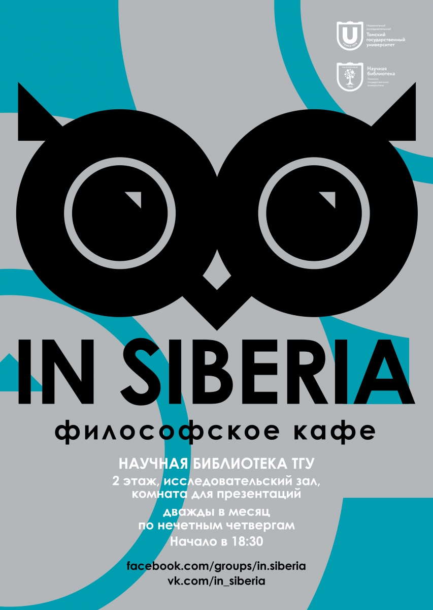 Встреча философского кафе IN SIBERIA состоится 21 сентября в 18:30 в комнате для презентаций исследовательского зала (2 этаж нового здания библиотеки).