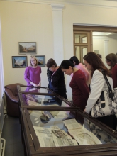 Затем сотрудник отдела рукописей и книжных памятников Н.В. Гончарова сделала обзор представленных в витринах прижизненных публикаций произведений поэта в журналах «Библиотека для чтения» и «Отечественные записки», на страницах которых творчество Лермонтова открылось для читателя и было высоко оценено таким известным критиком, как В.Г. Белинский.