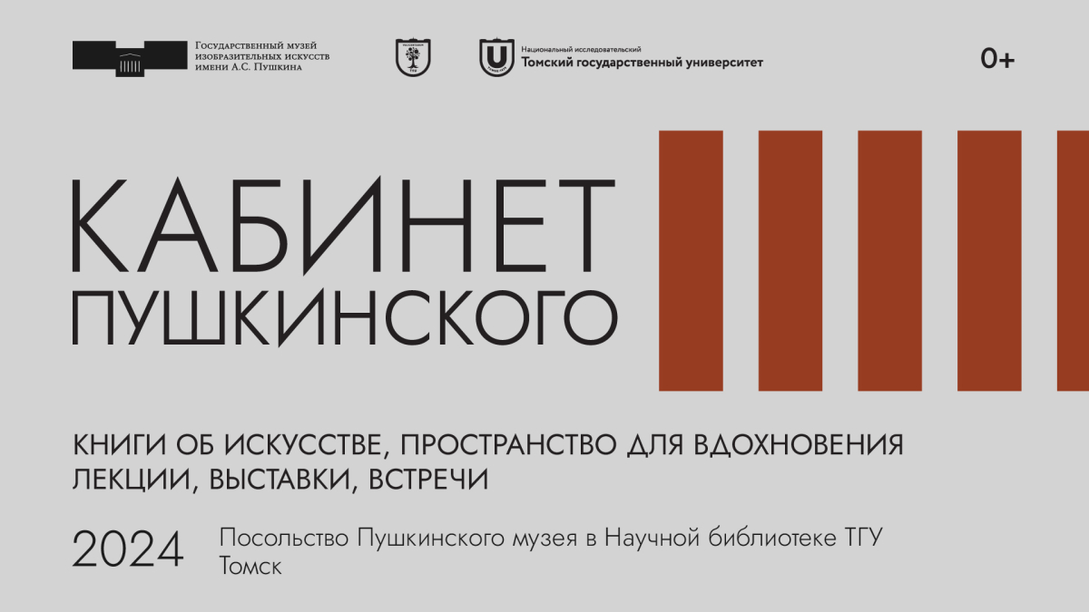 «Кабинет Пушкинского» - это посольство Пушкинского музея, где каждый может познакомиться с культурой и атмосферой одного из главных музеев страны. Первый «Кабинет» открывается в пространстве Научной библиотеки ТГУ, одной из крупнейших и старейших университетских библиотек России.