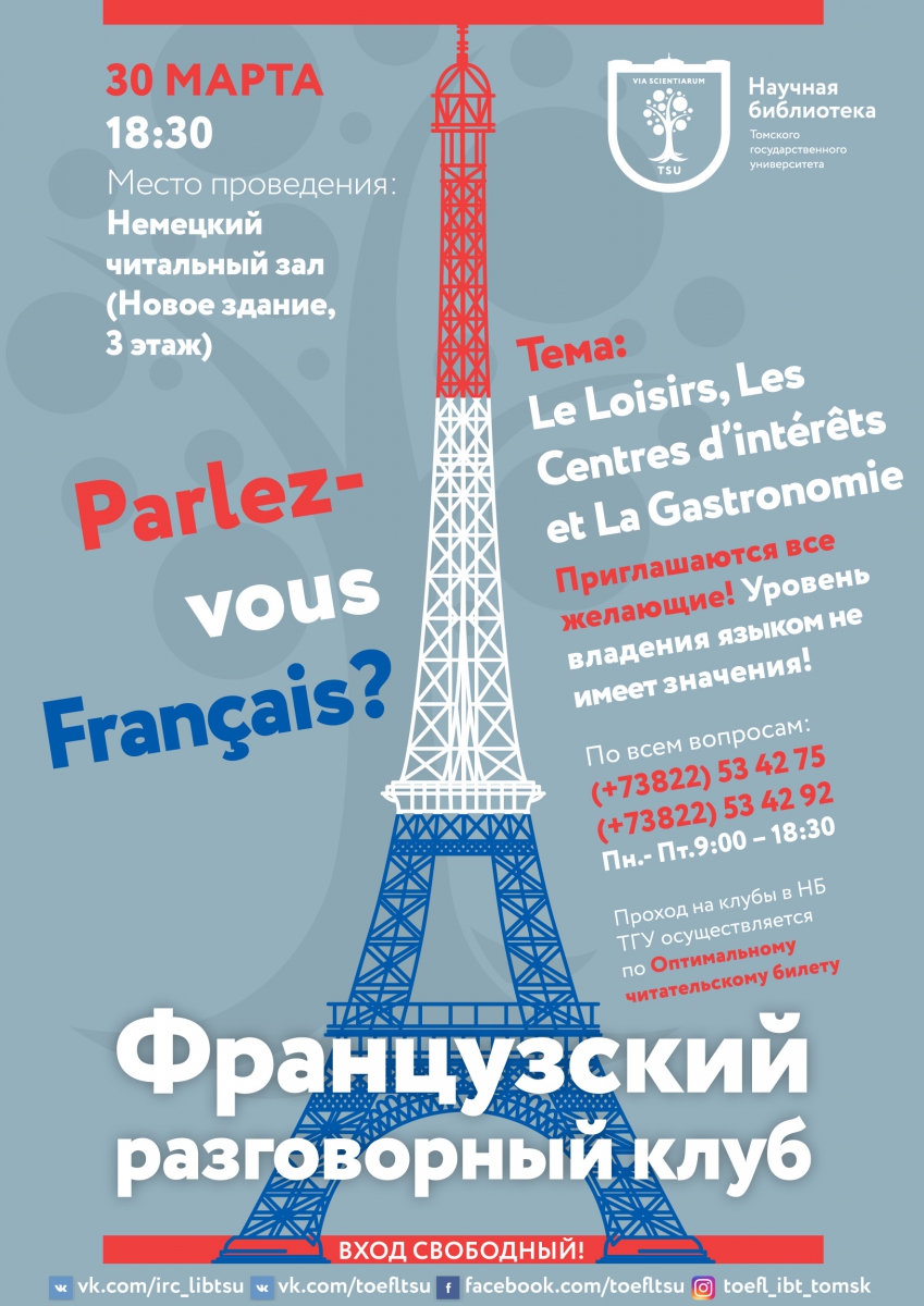 Приглашаем на клуб разговорного французского языка в НБ ТГУ!