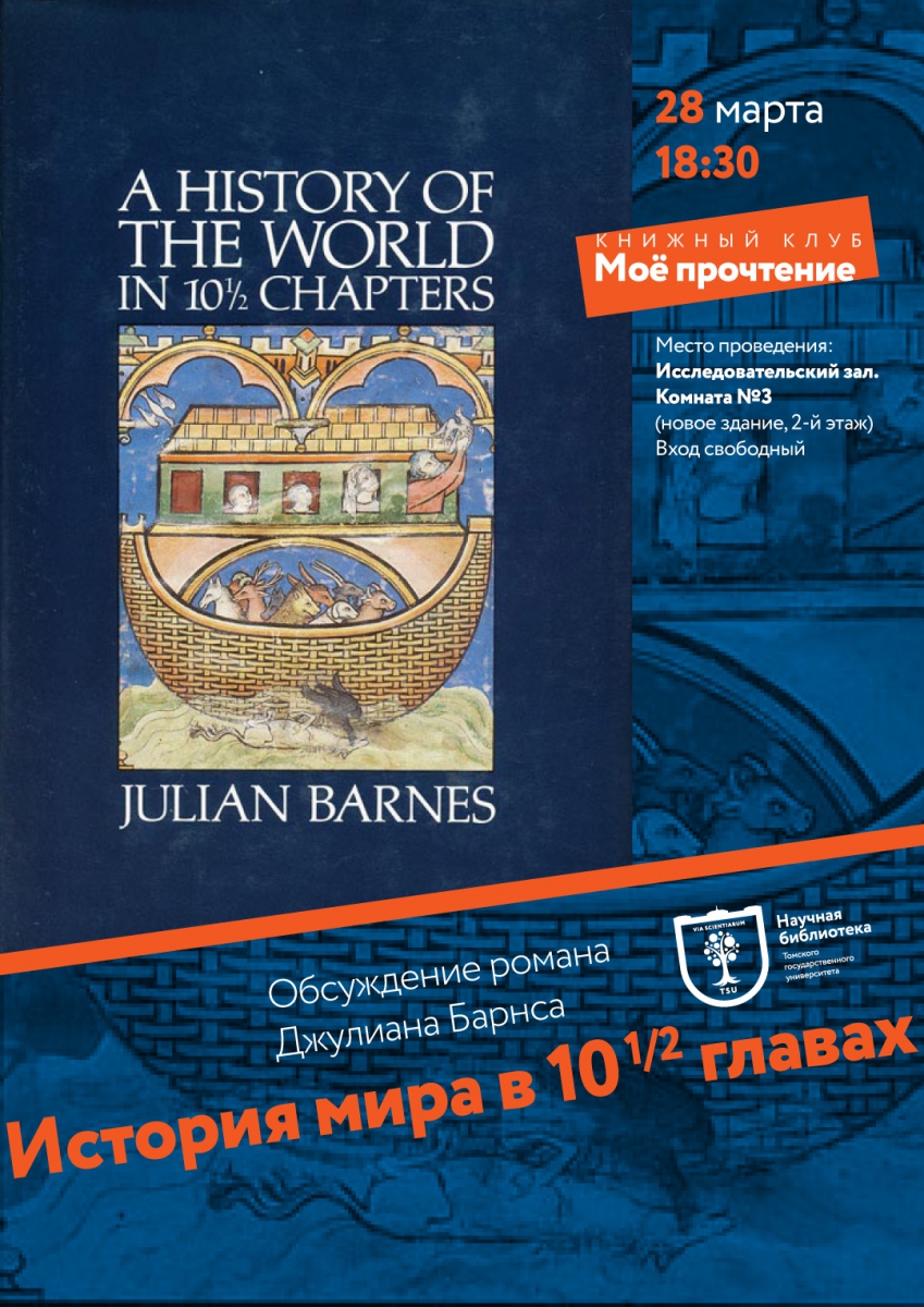 Очередная встреча книжного клуба «Мое прочтение» состоится 28 марта в 18:30. Ждём вас в исследовательском зале, в комнате № 3 (2 этаж, новое здание Научной библиотеки). Вход свободный.