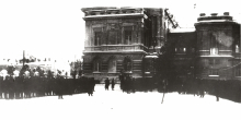 Отдельное здание для библиотеки Императорского Томского университета было построено в 1914 году. Но в связи с начавшейся Первой мировой войной его фасадная часть была занята под постой солдат и офицеров 39-го Сибирского запасного полка. Часть рощи, примыкающая к зданию библиотеки с северной стороны, стала плацем для построения военных.