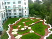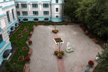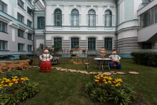 До начала строительства нового здания у Научной библиотеки существовал и другой дворик – с южной стороны. Сейчас здесь проезд в университетскую рощу и вход в библиотеку. А во время Великой Отечественной войны в этом дворике летом просушивали эвакуированные из Москвы и Ясной Поляны музейные экспонаты – шубы и шерстяную одежду Льва Толстого. Несколько дней назад газон у старого здания стал площадкой для инсталляции на тему «Вечеров на хуторе близ Диканьки» Николая Гоголя. Инсталляция, подготовленная Службой рощи ТГУ для участия в ежегодном городском конкурсе по благоустройству «Томский дворик», уже стала у томичей популярным местом для прогулок и фотосессий.