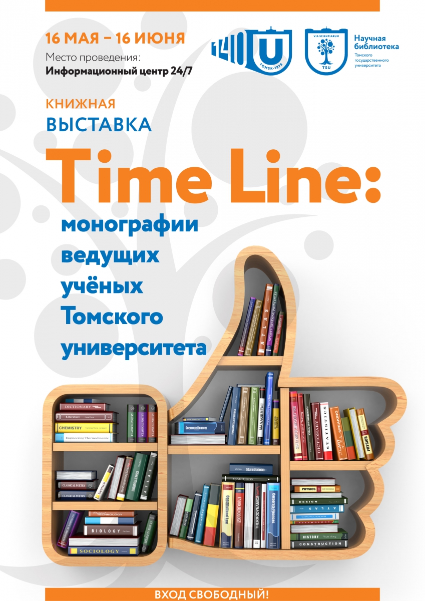 К 140-летию Национального исследовательского Томского государственного университета в информационном центре 24/7 Научной библиотеки открыта выставка «TimeLine: монографии ведущих ученых ТГУ».