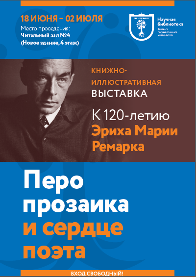 К 120-летию писателя в читальном зале № 4 оформлена книжная выставка, которая заинтересует и знатоков творчества Ремарка, и тех, кто только собирается стать поклонником таланта большого мастера.