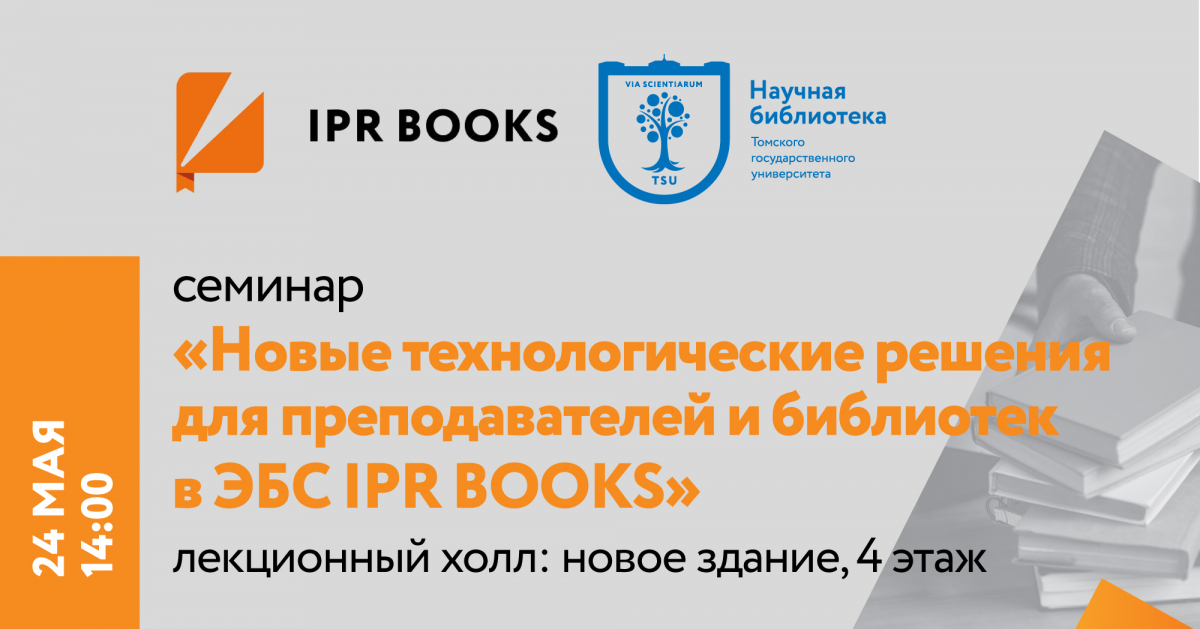 24 мая в 14:00 в лекционном холле на 4-м этаже нового здания Научной библиотеки состоится семинар «Новые технологические решения для преподавателей и библиотек в ЭБС IPR BOOKS».