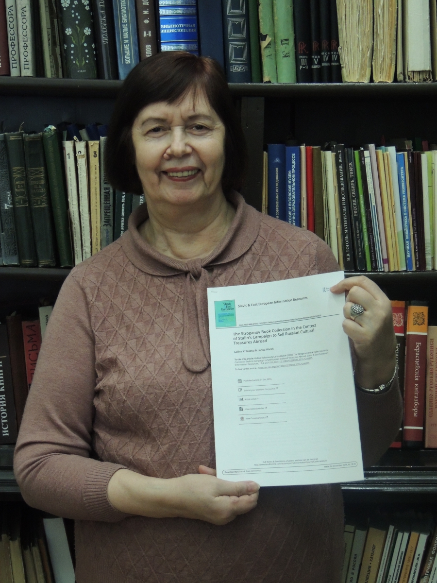 В четвертом номере журнала «Slavic and East European Information Resources» (издается в Калифорнии, в Стенфордском университете) в начале декабря опубликована совместная статья Г.И. Колосовой и Л.В. Уолш «The Stroganov Book Collection in the Context of Stalin’s Campaign to Sell Russian Cultural Treasures Abroad» («Строгановское книжное собрание в контексте Сталинской компании по продаже за границу культурных ценностей»).