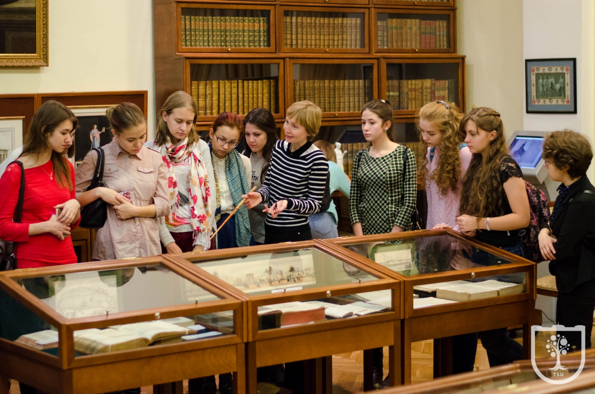 Музей книги Научной библиотеки традиционный участник такой декады. И в этот раз она показала несомненный интерес студентов разных курсов и факультетов к редким изданиям и рукописям, к истории книги. Об этом говорят вопросы, заданные на экскурсиях, – вот некоторые из них: «Какая самая старая книга в музее?», «Как сохраняются древние книги?», «Какими путями они попадают в музей?», «Кому принадлежали старинные предметы, находящиеся на столе и в витринах?».