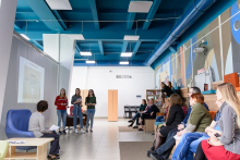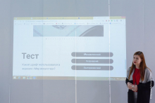 Презентация началась с представления проекта «Электронного интерактивного путеводителя по Научной библиотеке ТГУ». Его готовят студенты 3 курса Екатерина Гришина, Дарья Суслова и Анастасия Костышина. Они поставили перед собой задачу облегчить всем посетителям навигацию по библиотеке и «дать информацию о различных функциях её залов и отделов». В ходе работы студенты не только ориентировались на данные опроса посетителей, но и консультировались у сотрудников отдела социокультурных коммуникаций Научной библиотеки. Проект находится ещё в стадии разработки, поэтому для дальнейших действий авторам пригодятся высказанные замечания и рекомендации.