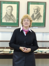 Обзорную экскурсию по выставке провела заведующая отделом рукописей и книжных памятников Г.И. Колосова. Она представила посетителям прижизненные издания и публикации произведений Карамзина, среди которых знаменитая «История государства Российского» (1816-1826 гг.), «Письма русского путешественника», журнал «Вестник Европы» и другие издания XVIII-начала XIX вв.