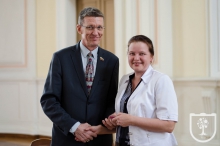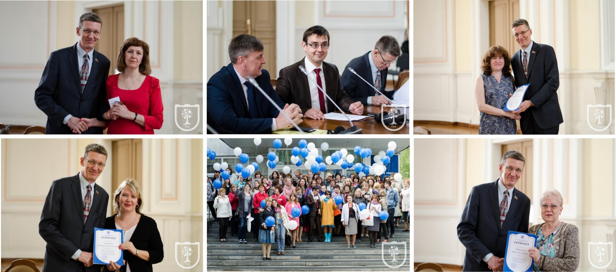 Проректор по социальным вопросам Сергей Павлинович Кулижский сердечно поздравил собравшихся с профессиональным праздником и вручил Л.Г. Шаринской и С.Н. Шумиловой высшую награду ТГУ – «Медаль за заслуги перед Томским государственным университетом». Грамотами ТГУ были отмечены также многие сотрудники библиотеки. Начальник научного управления ТГУ Татьяна Семёновна Краснова и председатель профкома сотрудников ТГУ Олег Эдуардович Мерзляков наградили библиотекарей за большой вклад в обеспечение научной работы университета и за активное участие в профсоюзной деятельности.
