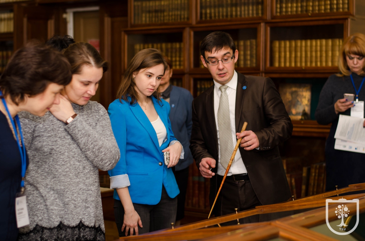 Во время экскурсии роль гида выполнял не только директор библиотеки – много важной информации участники воркшопа получили и от проректора ТГУ по социальным вопросам Сергея Кулижского. В частности, он сделал акцент на том, что многое в судьбе и развитии университетских библиотек зависит от позиции первого руководителя вуза, его понимания важности роли библиотеки. В ТГУ Научная библиотека включена во все основные направления деятельности университета; участвует в базовых процессах – учебном, научном, в международных связях. В библиотеку перемещён Молодёжный центр научного управления ТГУ, Парк социогуманитарных технологий, Центр социально-профессионального волонтерства «UNIVOL», что дало возможность сконцентрировать молодёжную инфраструктуру в одном месте. В библиотеке проходят научные конференции, форумы, стратегические сессии; библиотечное пространство, как и университетское в целом, используется для постоянной выставочной деятельности, культурно-просветительской работы.