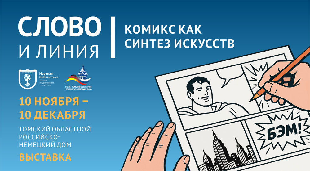 10 ноября в Томском областном Российско-немецком Доме начала работать выставка «Слово и линия. Комикс как синтез искусств». Издания из фондов Научной библиотеки Томского государственного университета представляют комикс как синтез изобразительного и литературного начал во всем разнообразии форм и жанров.