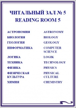 На дверях читальных залов размещены таблички с названием зала и перечнем отраслей знаний.