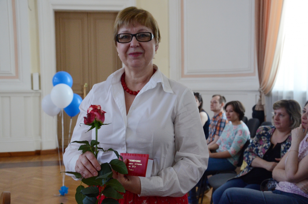 Затем советник ректора Григорий Ефимович Дунаевский вручил Грамоты ТГУ Н.В. Гончаровой, С.В. Макрушиной, Е.А. Михайловой, Э.В. Резнику, О.Г. Шабуровой. Благодарность ТГУ была объявлена Е.А. Логуновой, О.А. Степанченко, О.А. Ефимовой, В.И. Шуберту, Н.Ф. Меркуловой, Е.А. Осиповой, М.А. Шиловой, Л.Л. Берцун, Д.С. Никитину, Г.И. Колосовой. Председатель профкома ТГУ Олег Эдуардович Мерзляков вручил грамоты профсоюзным активистам, а председатель Совета ветеранов ТГУ Л.Л. Берцун – удостоверения «Заслуженный ветеран труда ТГУ» Ольге Григорьевне Шабуровой и Анне Алексеевне Шиховцевой.