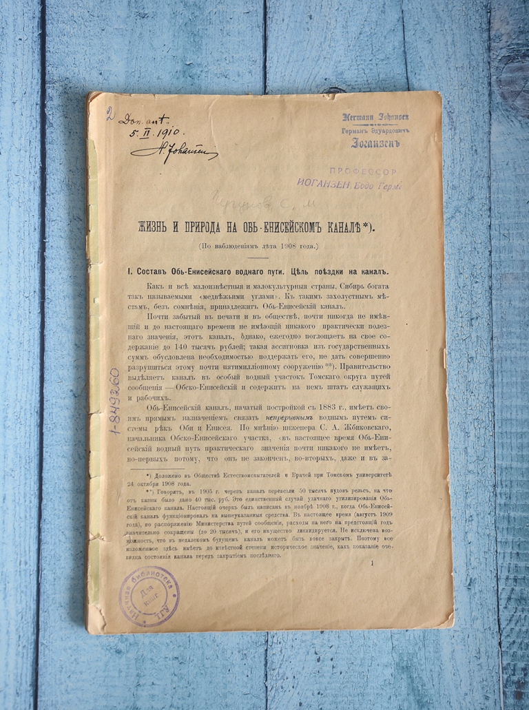 – Библиотека Иоганзенов – это не просто книги; они отражают исследовательские интересы и раскрывают научные связи своих владельцев, позволяют заглянуть в рабочий процесс, – рассказывает одна из авторов выставки главный библиотекарь сектора хранения книг Анастасия Березовская. – На выставке демонстрируются два очень интересных документа. Первый – конволют «Орнитологические работы 1895–1912»: в нем собраны собственные публикации Германа Эдуардовича, оттиски статей других исследователей и вырезки из газет с рукописными пометами ученого, который на протяжении десятилетий фиксировал природные явления Сибири. Второй – машинописная рукопись докторской диссертации Бодо Германовича «Рыбы Западной Сибири» (1944). Над ней он работал во время Великой Отечественной войны, когда организовывал экспедиции для изучения запасов рыбы, которую потом отправляли на фронт.