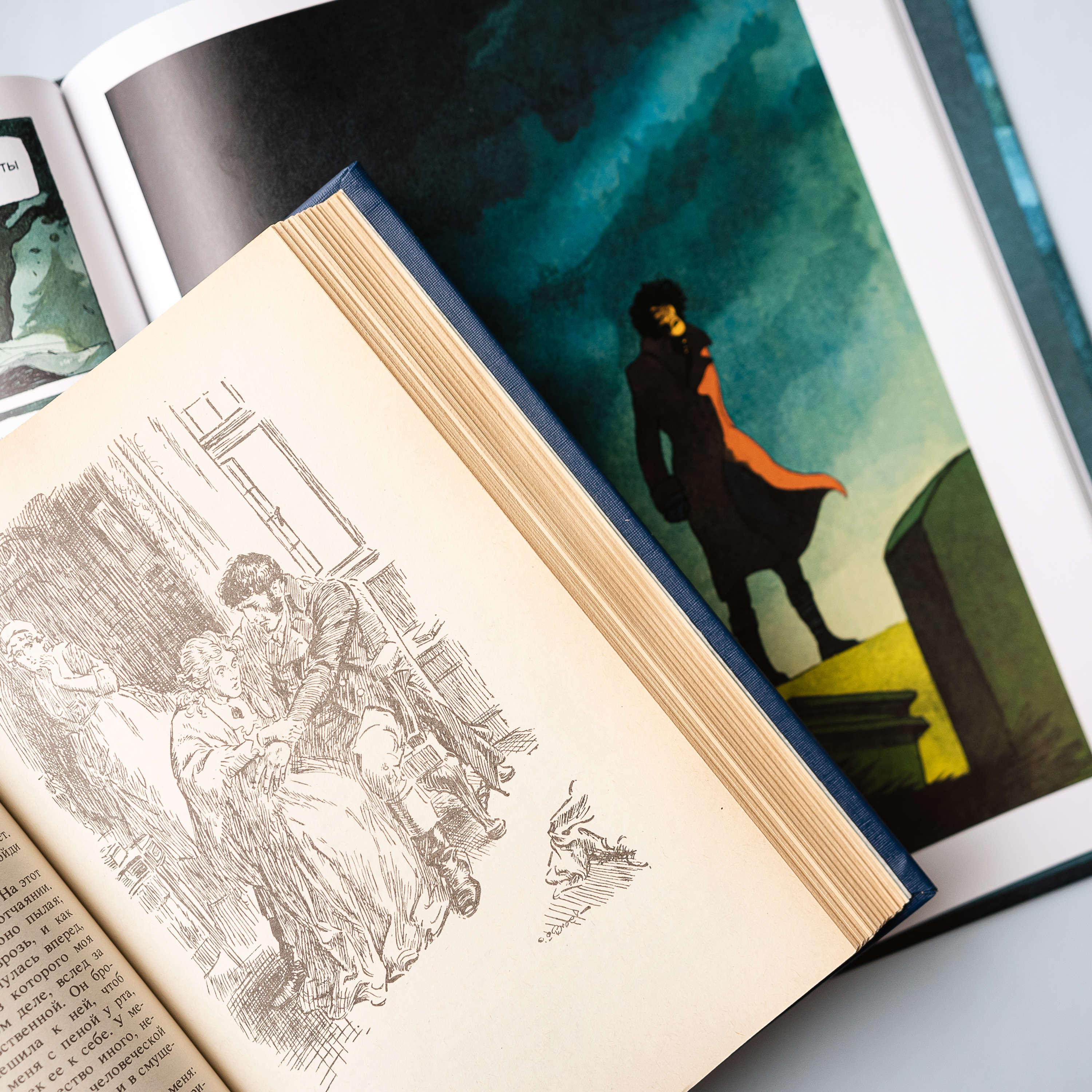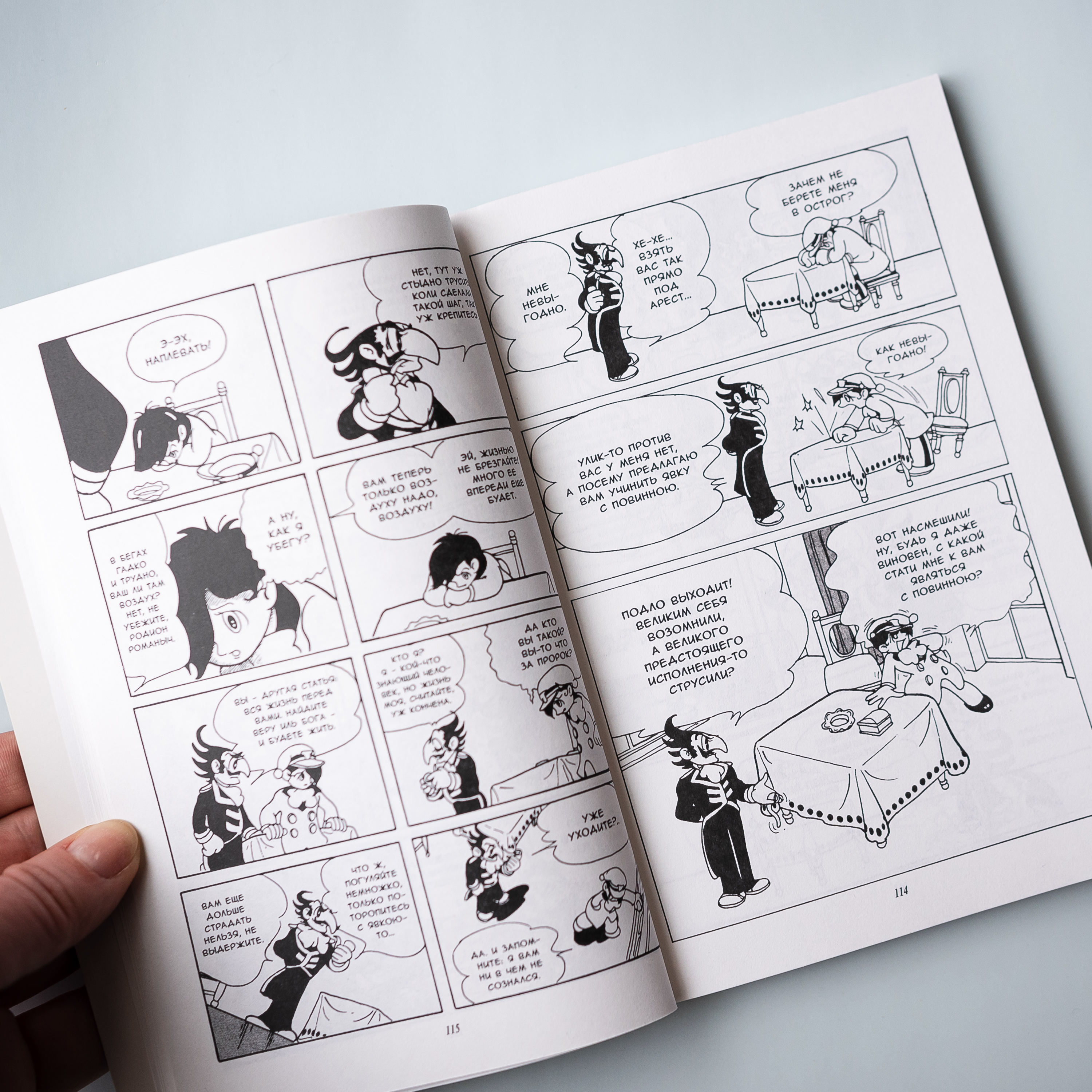 В таком сопоставлении знакомые тексты обретают новую жизнь, художник и сценарист становятся соавторами писателя, предлагая новый способ восприятия знакомого сюжета. Хрестоматийный пример такой трансформации – произведение корифея современной японской манги и аниме Осаму Тэдзуки «Tsumi To Batsu» (1953). Основой для него послужил роман Федора Достоевского «Преступление и наказание», но Тэдзуки перенес действие из Петербурга XIX века в послевоенную Японию. Переводное издание манги Тэдзуки рядом с книгой русского классика позволяет проследить, как меняется восприятие сюжета при смене культурного кода и эпохи.
