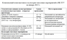 Комплексный план выставок и культурно-массовых мероприятий в НБ ТГУ на январь 2015 года