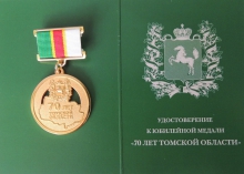 Юбилейная медаль «70 лет Томской области» - это награда для граждан, которые своим трудом внесли «значительный вклад в развитие Томской области в социально-экономической, политической, научно-исследовательской, благотворительной, спортивной, общественной и иных сферах деятельности».